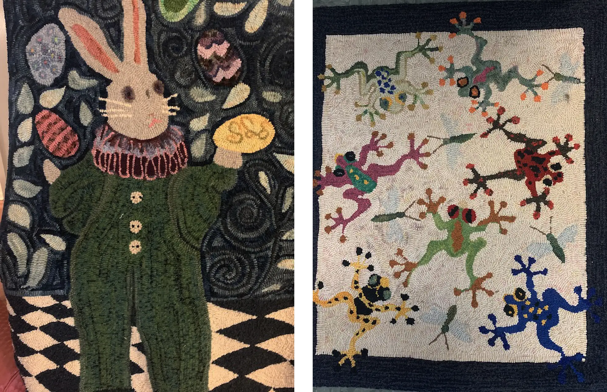 In the late 1980s, my husband Dick and I shared a small condo in Boca Grande, FL, with another couple. We took tennis lessons, eventually played mixed doubles, and then joined the tennis team. It was there I met several women who hooked rugs, and we attended a rug show by Preston McAdoo in the community center. I loved the rugs but thought they were too expensive. I knew I could do that myself. From a magazine I ordered a pattern, and, with no frame, I began.